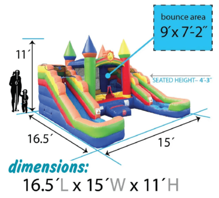 Introducing our Castle Bounce House with 2 Water Slides—a thrilling adventure for kids right in your backyard! This inflatable castle brings the excitement of a royal fortress with two exhilarating water slides, guaranteeing endless hours of splashing fun. Crafted with durable materials and top-notch safety features, parents can enjoy peace of mind while kids bounce and slide in style. Let imaginations soar and create unforgettable memories with our Castle Bounce House!