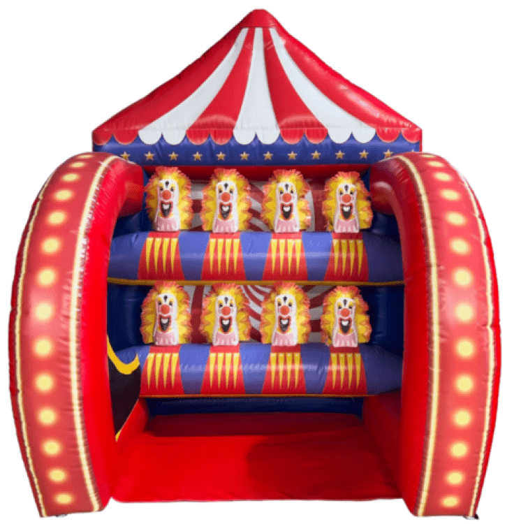 Step right up and test your aim with our Down a Clown game. This classic carnival-style game is a hit at parties, festivals, school events, and backyard fun days. Participants will throw items like balls, footballs, bean bags, or even frisbees at a row of colorful clowns. Each accurate throw knocks a clown down, challenging players to see how many they can topple in a set time. Get ready for a friendly competition where everyone can show off their throwing skills and aim for a prize. Bring a classic carnival vibe to your next event with Down a Clown!