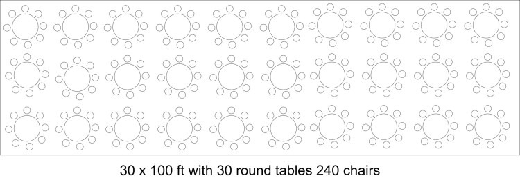 - 30 x 60in round tables with 240 chairs