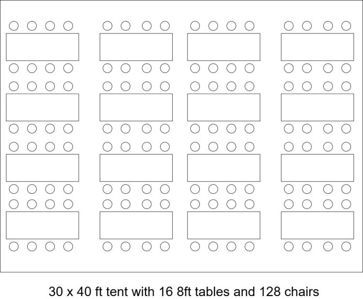 - 18 x 8ft tables with 144 chairs