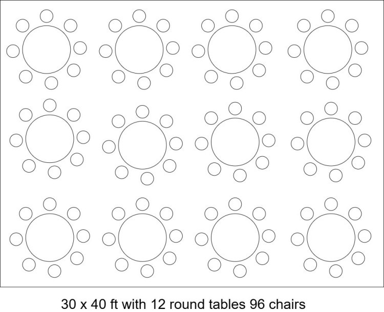 - 12 x 60in round tables with 96 chairs