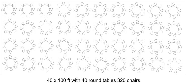 - 40 x 60in round tables with 320 chairs